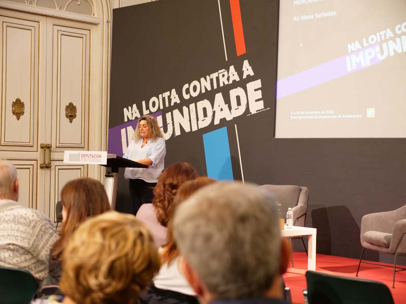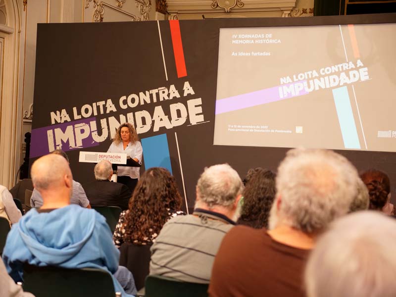 Ortega explicou que a loita contra a impunidade e a revisión dos dogmas franquistas son temas centrais do departamento provincial de Memoria “porque entendemos que facer xustiza coas vítimas é tamén desmontar o que durante décadas se transmitiu sobre elas, sobre as súas ideas e sobre a sociedade que quixeron construír”. Destacou que os dogmas impostos pola ditadura non só afectaron á xeración que a habitou, senón que moldearon o pensamento “das que chegamos logo”.