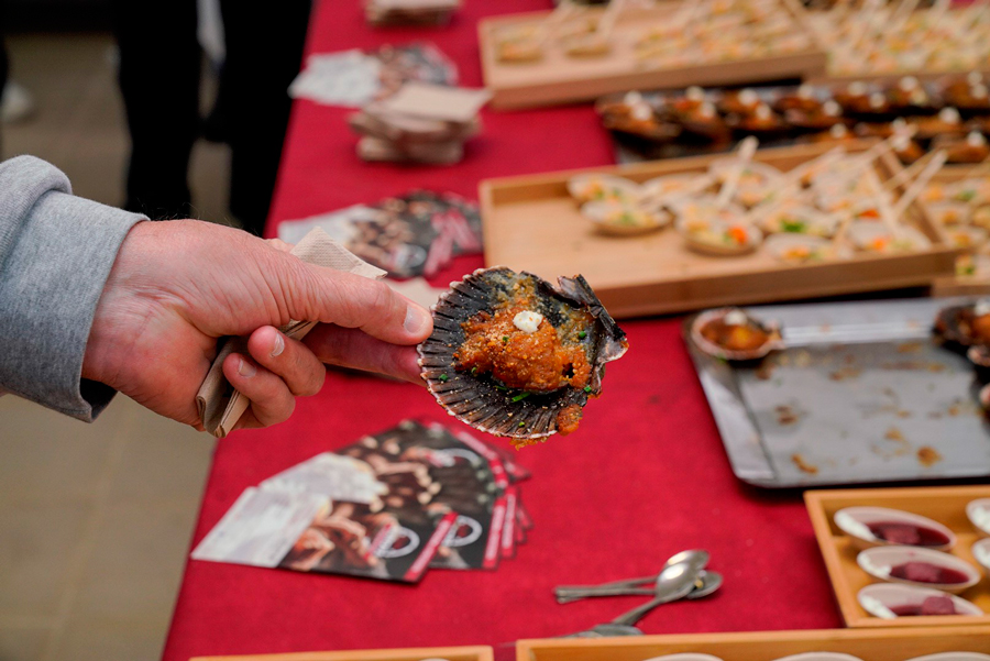 O programa da Deputación “Degusta Europa” aterrou hoxe na Praza de Abastos de Cambados, onde a veciñanza da vila e as persoas traballadoras do mercado municipal desfrutaron de máis de 800 tapas elaboradas polo alumnado do CIFP Carlos Oroza con produtos da provincia de quilómetro cero. Zamburiña gratinada, mexillóns á crema, larpeira de sobremesa, e ponche de Sansón e queimada 4.0, para beber, foron as tapas que compuxeron o menú que o alumnado do centro de formación profesional pontevedrés deseñou para a ocasión.