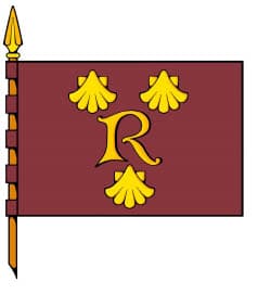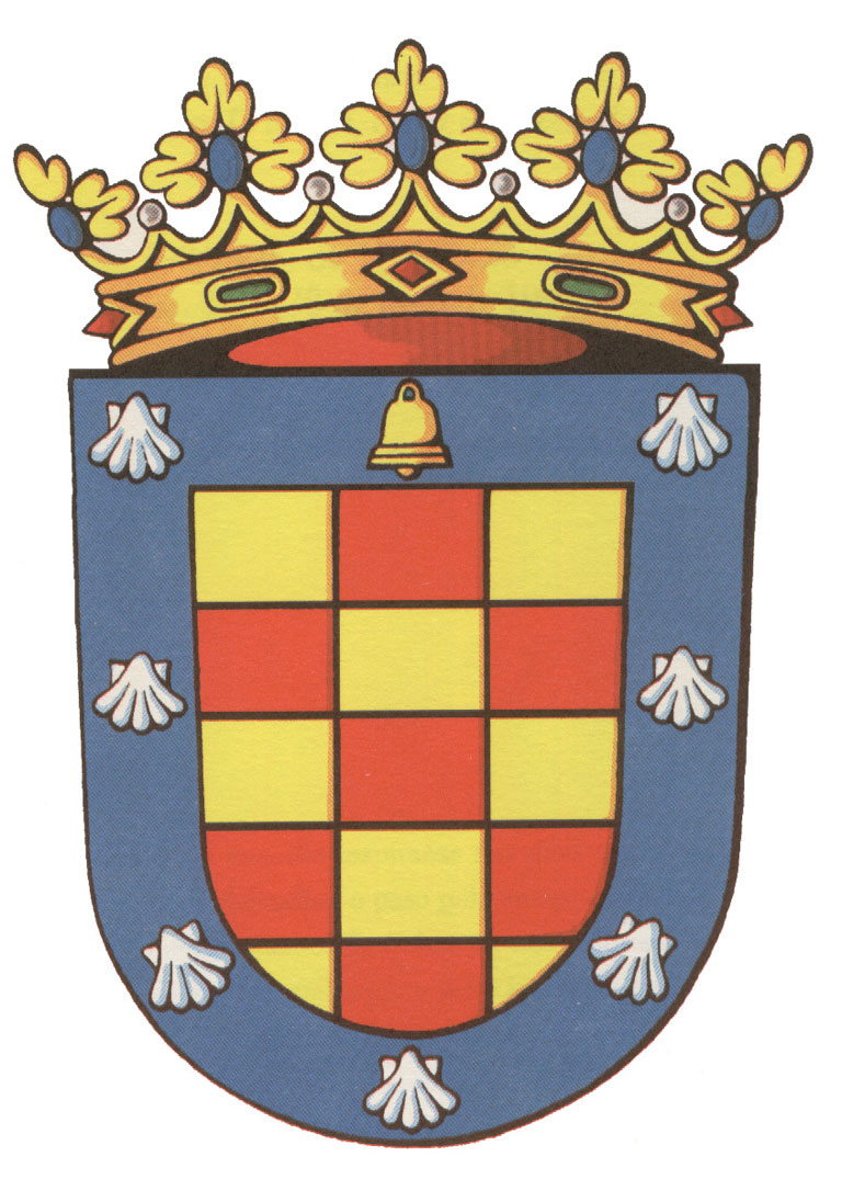De azur (azul), a letra R de ouro (amarelo), posta no centro, e acompañada de tres vieiras, tamén de ouro, dúas no xefe e unha na punta. Ao timbre, coroa real pechada.