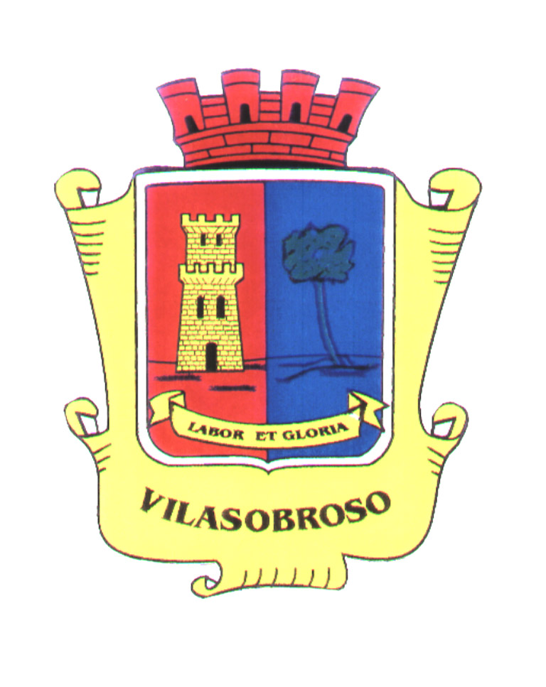 Partido, formado por dous cuarteis; o da esquerda é un castelo de ouro de dúas torres, sobre campo de goles que representa ao castelo de Vilasobroso; o da dereita é unha sobreira en campo de azur; ao pé no interior do escudo, unha banda que vai de esquerda á dereita en ouro, coa alegoría en latín “Labor et gloria”. Na base exterior, o nome da localidade. Ao timbre, unha coroa mural.