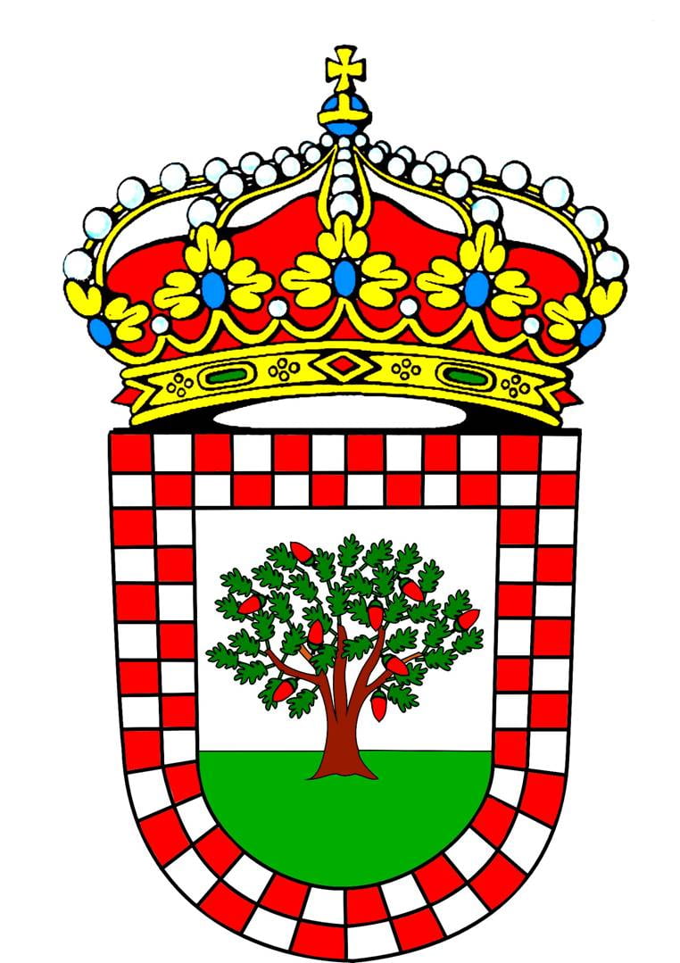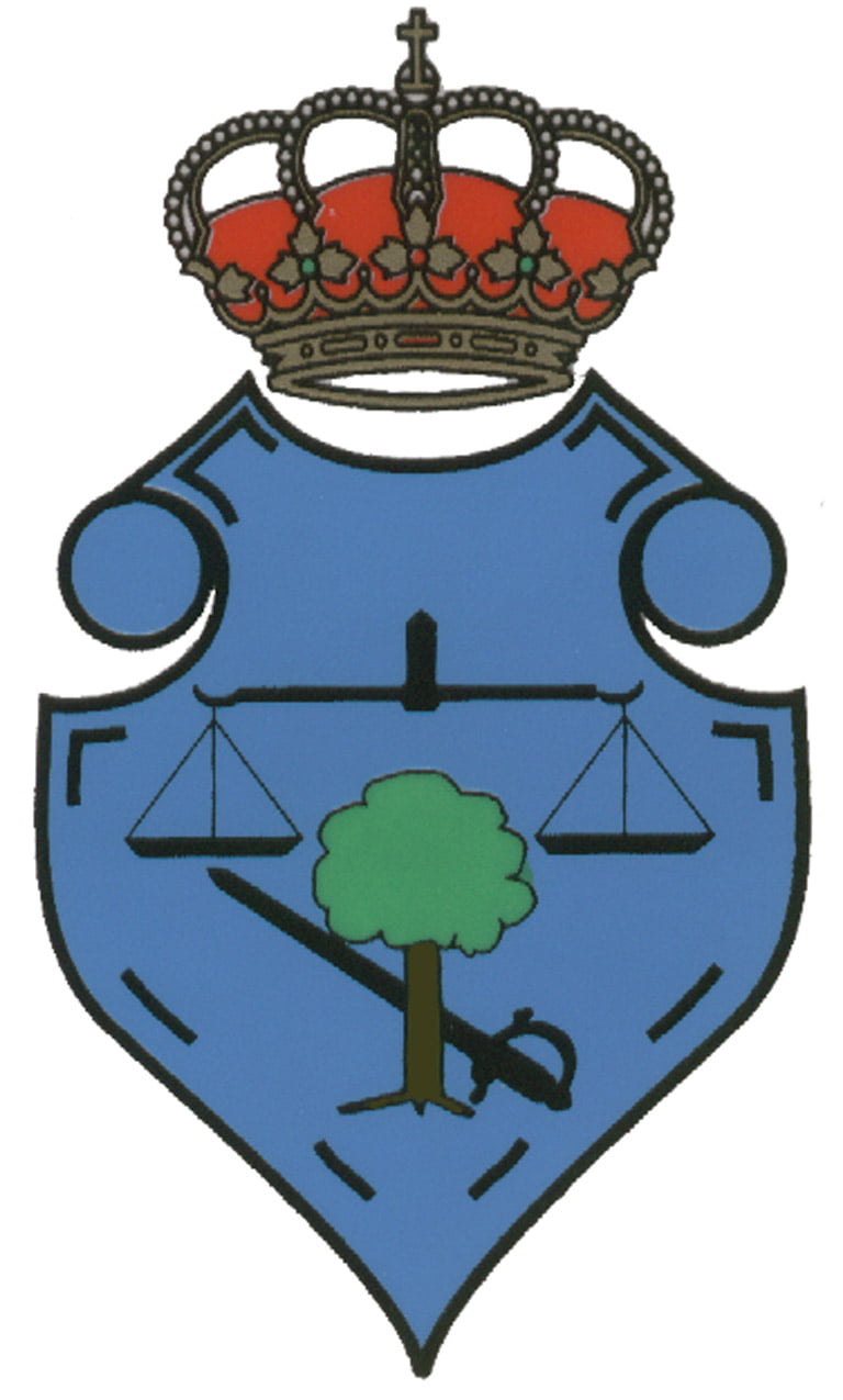 En campo de ouro, unha balanza da xustiza, de prata, e un carballo de sinople, atravesado por unha espada, de prata. Ao timbre, coroa real pechada.