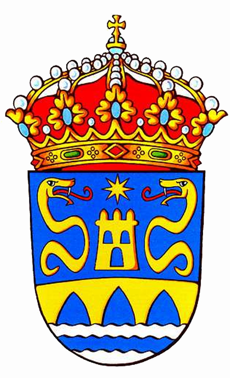 En campo de sinople, un león de ouro, coroado da mesma cor e a orla do mesmo metal. Ao timbre, coroa real pechada.