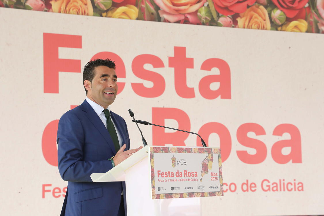 O presidente da Deputación de Pontevedra, Luis López, enxalzou a Festa da Rosa de Mos, evento de interese turístico de Galicia, como unha celebración que pon en valor a cultura e a historia do Concello, que atrae cada ano a milleiros de visitantes e que reforza o vínculo entre a veciñanza e o seu municipio no acto de apertura destas festas que celebran este ano a súa edición número 52. Unha celebración na que o mandatario provincial destacou a relevancia dos novos valedores e valedoras da rosa en distintos ámbitos da provincia. "Vivimos nunha provincia extraordinaria grazas a veciñas e veciños como os de Mos que, coa súa entrega impulsan ano tras ano esta Festa da Rosa, que fai deste Concello de Mos e da nosa provincia un destino turístico de primeira", resaltou o mandatario provincial na inauguración dunha celebración á que tamén acudiron a vicepresidenta Luisa Sánchez e as deputadas Sandra Bastos e Belén Cachafeiro.