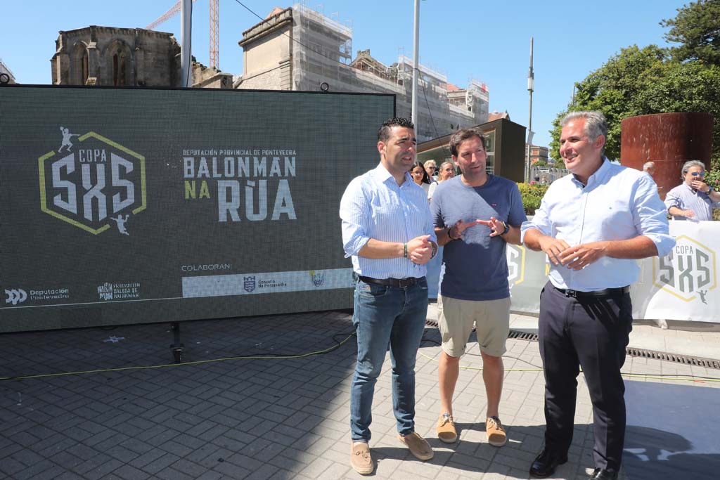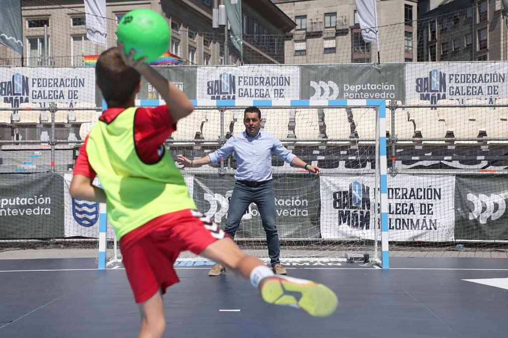 O presidente da Deputación de Pontevedra, Luis López, xunto vicepresidente Rafa Domínguez, visitou este venres a cancha de balonmán que a Deputación instalou na Praza de España de Pontevedra na que se leva celebrando ao longo de toda a semana a primeira Copa 5x5 Balonmán da rúa, que impulsa o organismo provincial. Unha competición, na que participan 16 equipos de toda a provincia de categorías alevín e benxamín.