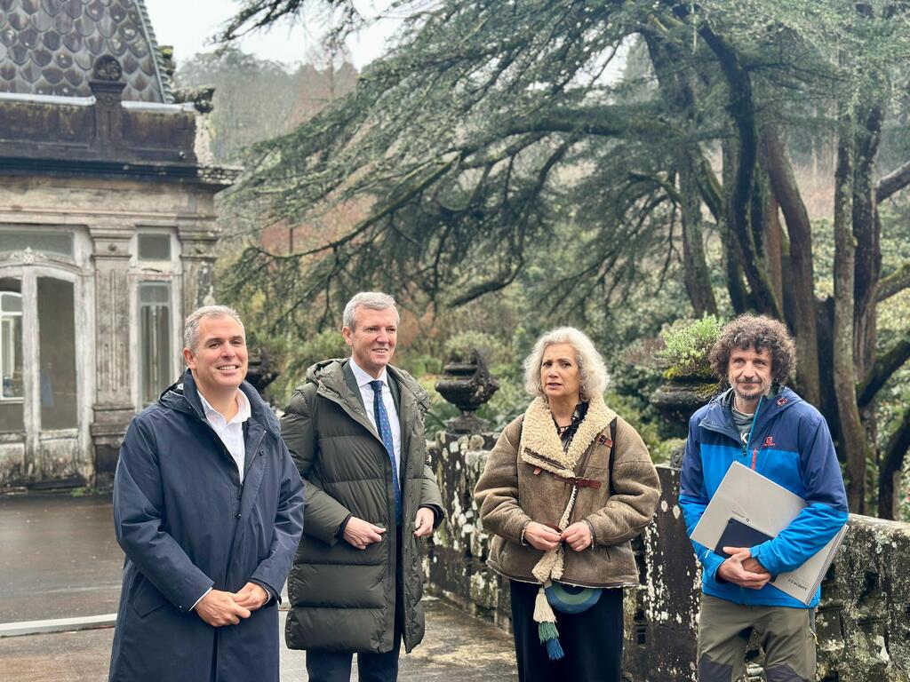O vicepresidente da Deputación de Pontevedra, Rafa Domínguez, participou este xoves na visita do presidente da Xunta de Galicia, Alfonso Rueda, ao pazo de Lourizán co equipo de arquitectos gañador do concurso de ideas para a súa rehabilitación. A UTE formada por Estudio Carme Pinós SLP e Carles Enrich Studio SLP gañou co lema Xard1n 2.0, un proxecto que aposta por manter a tradición do edificio e que lle dá unha predominancia aos seus xardíns. A Xunta destinará máis de 17 millóns de euros ata 2026 para o proxecto de reforma integral do Pazo e a súa contorna, cunha previsión de comezar os traballos este ano e rematando en 2027.