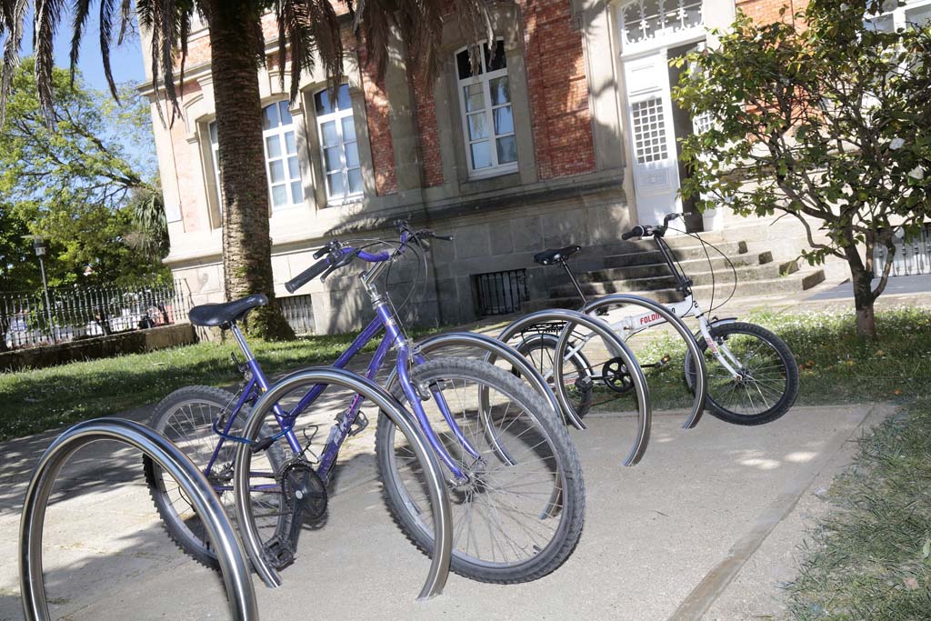A Deputación de Pontevedra pon desde hoxe á disposición do seu persoal e da cidadanía da cidade de Pontevedra un novo aparcadoiro de bicicletas situado na parte traseira do Edificio Administrativo, na contorna do parque das Palmeiras. A nova instalación está formada por cinco aneis, que permiten asegurar de maneira simultánea un total de dez bicicletas, tanto convencionais coma eléctricas, para así minimizar o risco de roubo.