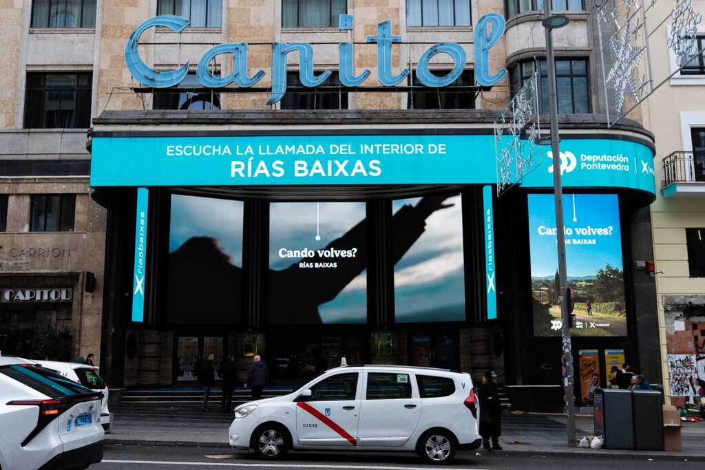 O deputado de Turismo Rías Baixas, Jesús Vázquez Almuíña, presentou este luns no Teatro Capitol de Madrid unha das accións que está a poñer en marcha a Deputación de Pontevedra para avanzar na desestacionalización e a descentralización do destino Rías Baixas. Desde hoxe e durante toda a semana, ata o día 30 de novembro, a Deputación proxectará na Gran Vía de Madrid —un dos mercados emisores clave de visitantes— os materiais da campaña Cando volves? preto de 2.000 veces coincidindo cun momento do ano no que o interese xeral por realizar viaxes ou escapadas curtas comeza a incrementarse.