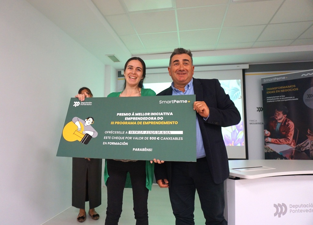 A Deputación de Pontevedra premia “A Fada de Aldea”, da silledense Gloria Lareo, como o mellor proxecto empresarial do III Programa de Emprendemento, unha iniciativa de SmartPeme+ que se desenvolveu entre maio e xullo no Viveiro de Empresas de Lalín para dar asesoramento e formación a ideas de negocio en fase inicial. A gañadora, que recibe 500 € en formación, presentou o seu proxecto nun acto que se celebrou na Finca Mouriscade de Lalín no que o deputado provincial Ricardo Martínez comprometeuse a seguir dando visibilidade ao talento emprendedor: “Con xente coma vós, temos garantido o futuro desta provincia”, asegurou.