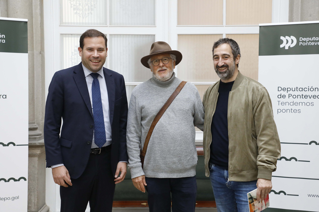 A Deputación de Pontevedra recibiu este xoves a Héctor Abad Faciolince, un dos autores que encabezan o cartel do encontro Pontevedra Literaria. Xuventude e Artes que a institución organiza este xoves e venres no Museo de Pontevedra. O vicepresidente Rafa Domínguez acompañou a Faciolince nun percorrido por varias das librarías máis singulares da cidade e, a continuación, o deputado de Cultura, Xuventude e Reto Demográfico, Jorge Cubela, recibiuno xunto a Rafa Cabeleira no Pazo provincial, onde percorreron as instalacións e mantiveron un encontro na Sala de Xuntas.