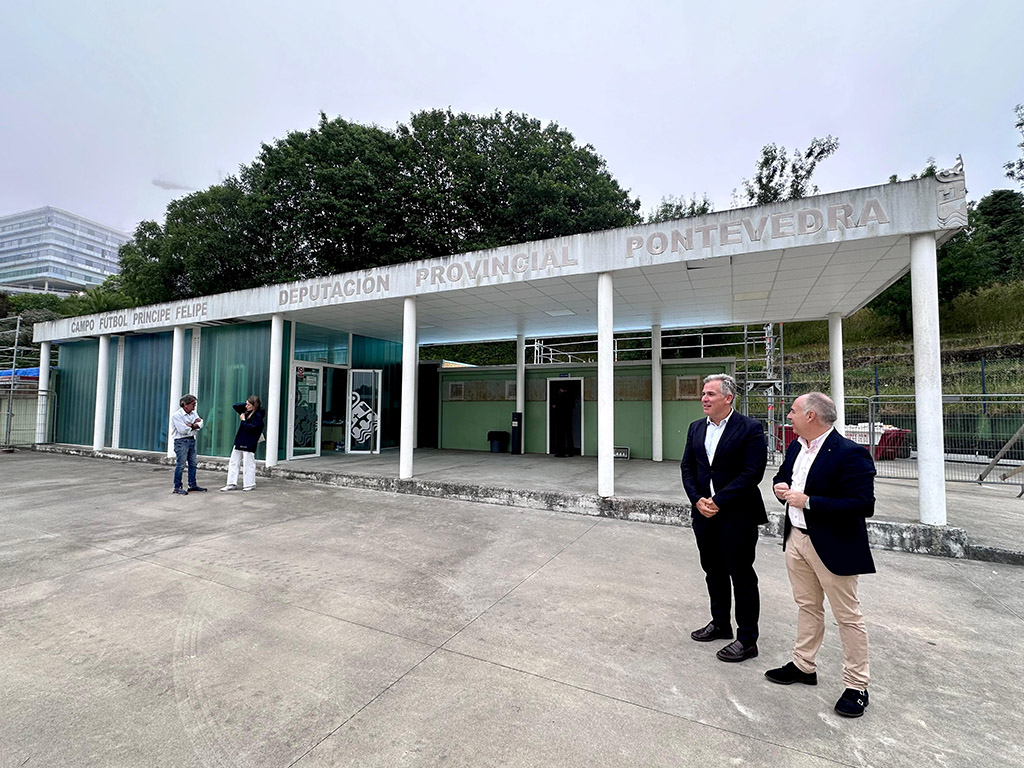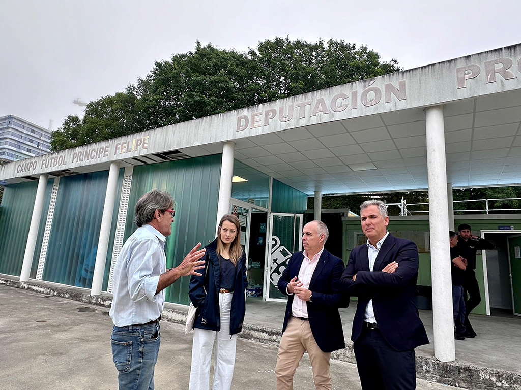 O vicepresidente da Deputación de Pontevedra, Rafa Domínguez, xunto co deputado provincial Javier Tourís, e membros do servizo de Arquitectura da institución provincial veñen de supervisar as actuacións de mellora que se están a realizar no campo de fútbol de Príncipe Felipe. Neste espazo, a institución provincial está a investir máis de 140.000 euros  para mellorar o alumeado do campo e remodelar os vestiarios.