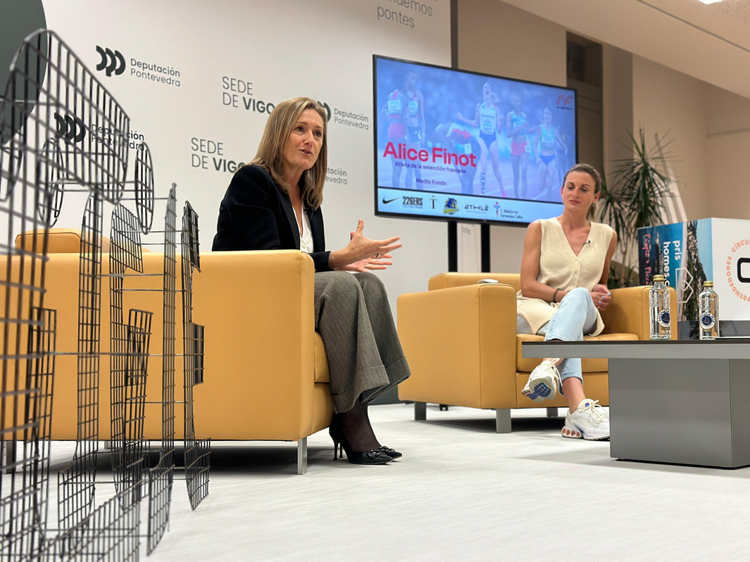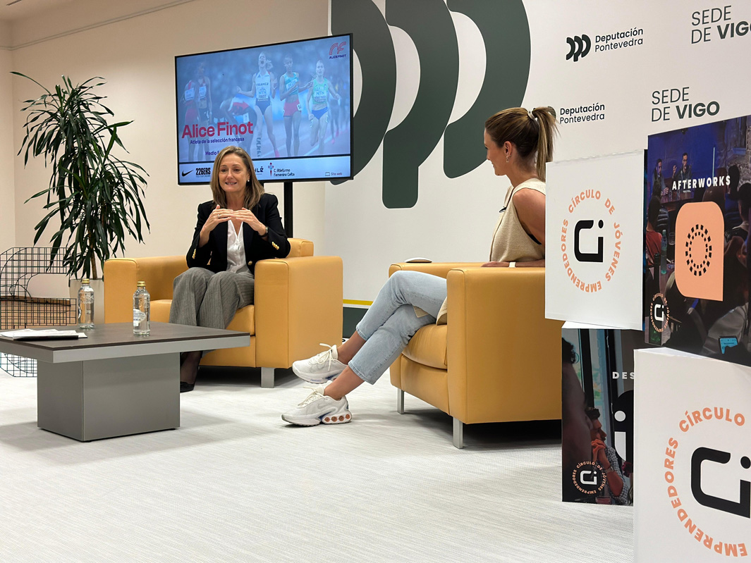 A vicepresidenta da Deputación de Pontevedra, Luisa Sánchez, participou hoxe na Sede de Vigo da institución provincial no afterwork organizado polo Círculo de Jóvenes Emprendedores (CIJE) e que tivo á deportista francesa afincada en Vigo Alice Finot como conferenciante principal. Sánchez aproveitou a ocasión para poñer en valor o mérito da deportista trala súa participación nos Xogos Olímpicos de París 2024, onde “quedou ás portas do podio de 3.000 obstáculos e conseguiu unha marca nunca xamais vista en Europa” e “ten demostrado que os soños, con esforzo e dedicación, se poden conseguir”.
