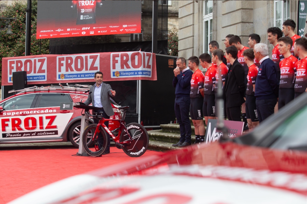 O presidente da Deputación de Pontevedra, Luis López, remarcou o compromiso do Goberno provincial coas e cos deportistas e clubs da provincia na presentación da nova tempada do Grupo Deportivo Supermercados Froiz, que tivo lugar este venres no exterior do Pazo provincial. O dirixente provincial destacou o labor que leva desenvolvendo este equipo ciclista durante máis de tres décadas na formación de novos deportistas e levando o nome da provincia polas estradas de todo o país. Do mesmo xeito, quixo recordar a figura de Magín Froiz. “É o gran pai do ciclismo, por todo o que fixo por este deporte e pola maridaxe coa empresa”, salientou López.