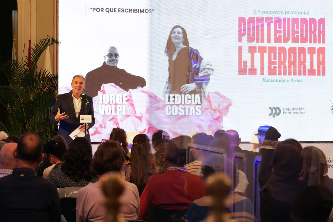 O vicepresidente da Deputación de Pontevedra  Rafa Domínguez subliñou esta tarde na inauguración do II Encontro Pontevedra Literaria. Xuventude e Artes o papel protagonista de Pontevedra como provincia de cultura e de letras. "Somos unha provincia de arte, de cinema, de música, de libros. Somos a provincia da cultura e temos aos mellores embaixadores, a persoas que dan boa mostra por todo o mundo do talento feito en Pontevedra", remarcou Domínguez ao referirse a Ledicia Costas, quen compartiu co tamén escritor Jorge Volpi a primeira das sesións do encontro, centrada en "Por que escribimos".