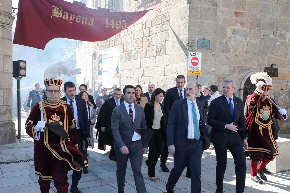 Na cerimonia inaugural, na que ademais do presidente Rueda e o rexedor Vázquez Almuíña, participaron os alcaldes da localidade granadina Santa Fe de la Vega, Juan Cobo; e da onubense Palos de la Frontera, Milagros del Rocío Romero; cidades marcadas tamén polo seu papel no descubrimento de América. O mandatario provincial destacou no seu discurso o papel de Baiona como cidade histórica pola Arribada da carabela Pinta, así como unha das grandes xoias das Rías Baixas. “Grazas a ese 1 de marzo de 1493, o Día da Arribada, Baiona é –e será por sempre— o quilómetro cero dunha historia colectiva, dun intercambio constante de experiencias e dunha irmandade cultural”, afirmou López.