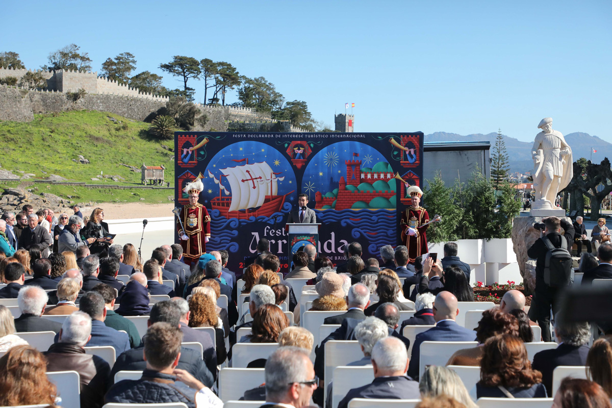 O presidente provincial participa, xunto co presidente da Xunta, Alfonso Rueda, e o alcalde e deputado, Jesús Vázquez Almuíña, na inauguración da XIX Festa da Arribada, unha cita de interese turístico internacional