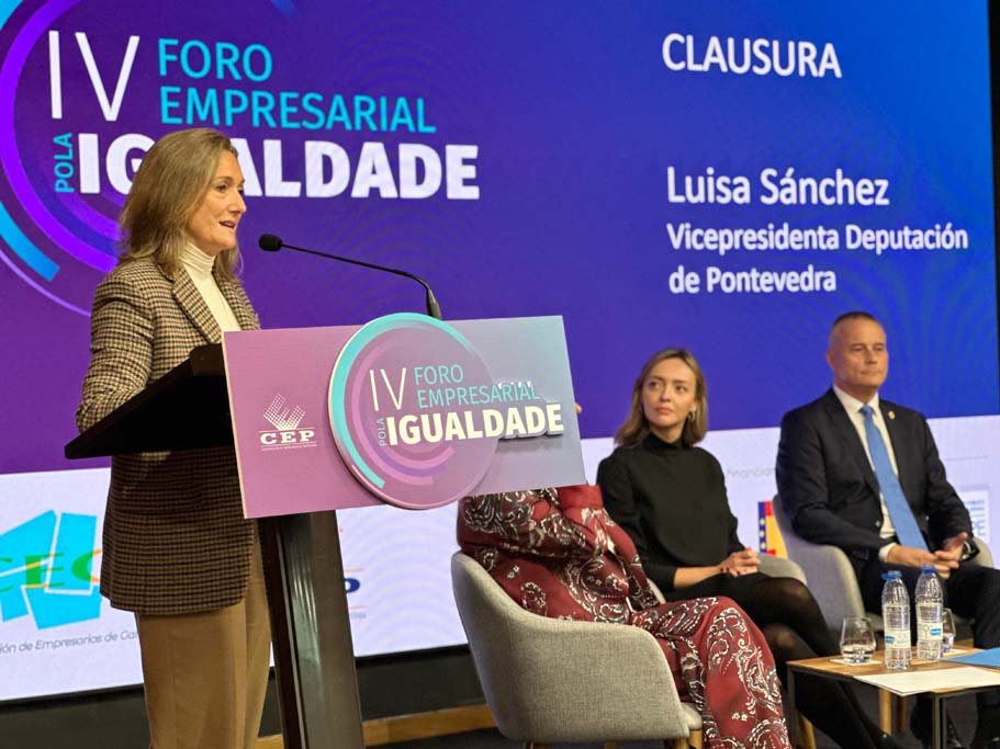 A vicepresidenta da Deputación de Pontevedra, Luisa Sánchez, participou este xoves na clausura do IV Foro Empresarial pola Igualdade, Diversidade e Inclusión na contorna laboral, organizado pola CEP na súa sede en Vigo e que foi inaugurado pola deputada de Igualdade da institución provincial, Sandra Bastos. Nesta xornada, que reuniu a presidentas, directivas e responsables de recursos humanos de empresas galegas, Sánchez quixo destacar a existencia de iniciativas como esta, “coas que estamos dando pasos firmes para romper barreiras e construír referentes”.
