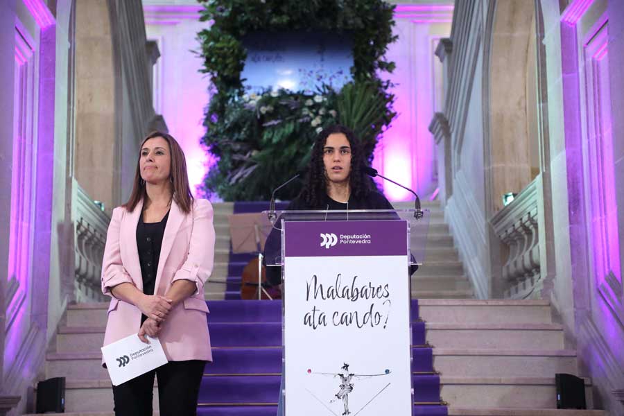 A Deputación de Pontevedra conmemorou este venres o Día Internacional da Muller cun acto no vestíbulo do Pazo provincial para denunciar os “malabares” que teñen que facer a diario as mulleres para compatibilizar a súa vida persoal e familiar coa laboral, así como para poñer o foco en que as tarefas dos coidados seguen a recaer principalmente nas mulleres. A deputada de igualdade, Sandra Bastos, foi a encargada de dar a benvida aos asistentes a un acto, entre os que estaba o presidente Luis López, membros do goberno provincial, da corporación e do tecido social da provincia, así como traballadoras da Deputación e veciñas da provincia. A continuación procedeuse á lectura do manifesto desta xornada do 8M correu a cargo de Olalla Folla e Candela Soria, presidenta e xogadoras do Poio Pescamar, un club de referencia no fútbol sala feminino a nivel nacional. O día redondeouse coa intervención artística das pontevedresas Alba Troiteiro e Macarena Montesinos.