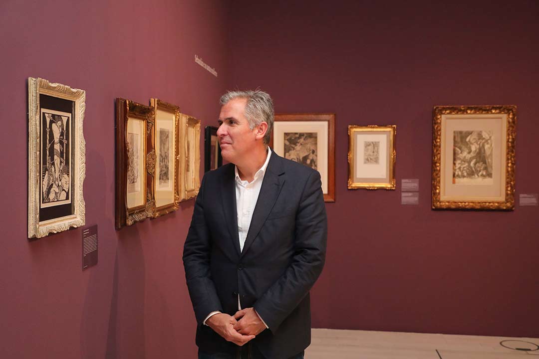 Pola súa parte, Natalia Fraguas explicou a proposta expositiva, na que se fuxiu da ordenación cronolóxica para organizar en función das temáticas tratadas nos gravados. Optouse por unha estética da acumulación, vinculada á idea de coleccionismo. Fraguas reivindicou tamén a importancia do gravado na historia da arte, que ao igual que a fotografía que protagoniza a outra exposición actual no Museo, é unha técnica moitas veces considerada menor, pero que ten gran relevancia e contribuíu enormemente á democratización da arte.