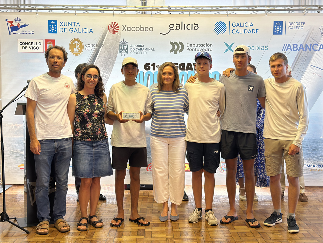 A vicepresidenta da Deputación de Pontevedra, Luisa Sánchez, participou esta tarde no acto de entrega de premios da cuarta etapa da 61ª Regata Rías Baixas, que transcorreu hoxe entre Combarro e Vigo. No acto, no que estiveron tamén presentes membros da directiva do Real Club Náutico de Vigo, da Federación Galega de Vela, de Galicia Calidade e do goberno local de Vigo, entregáronse cinco premios aos barcos que quedaron clasificados en primeiro posto nas cinco categorías da proba náutica (ORC 1-3, ORC 4-5, OPEN 1, OPEN 2 e Concentración).