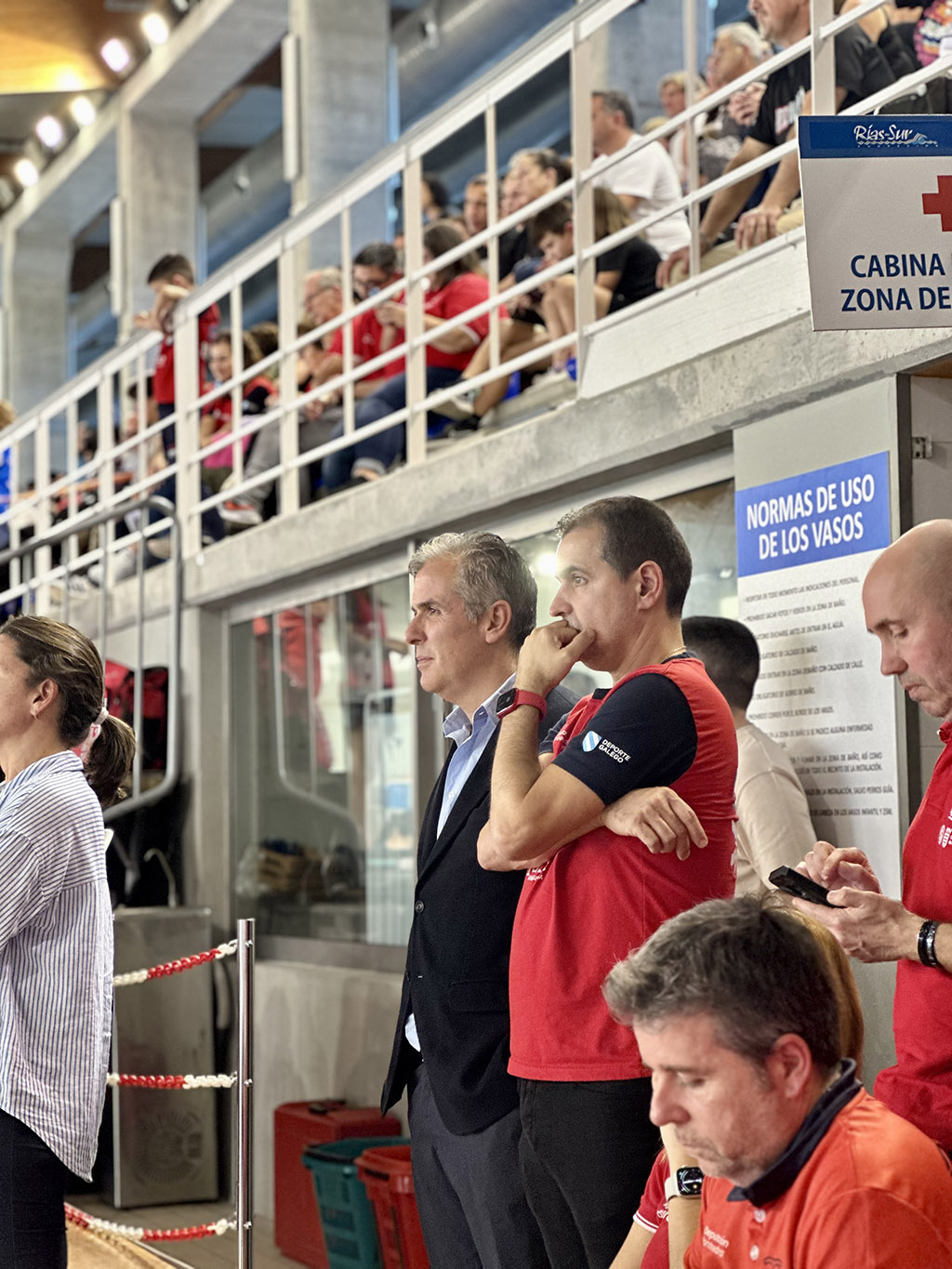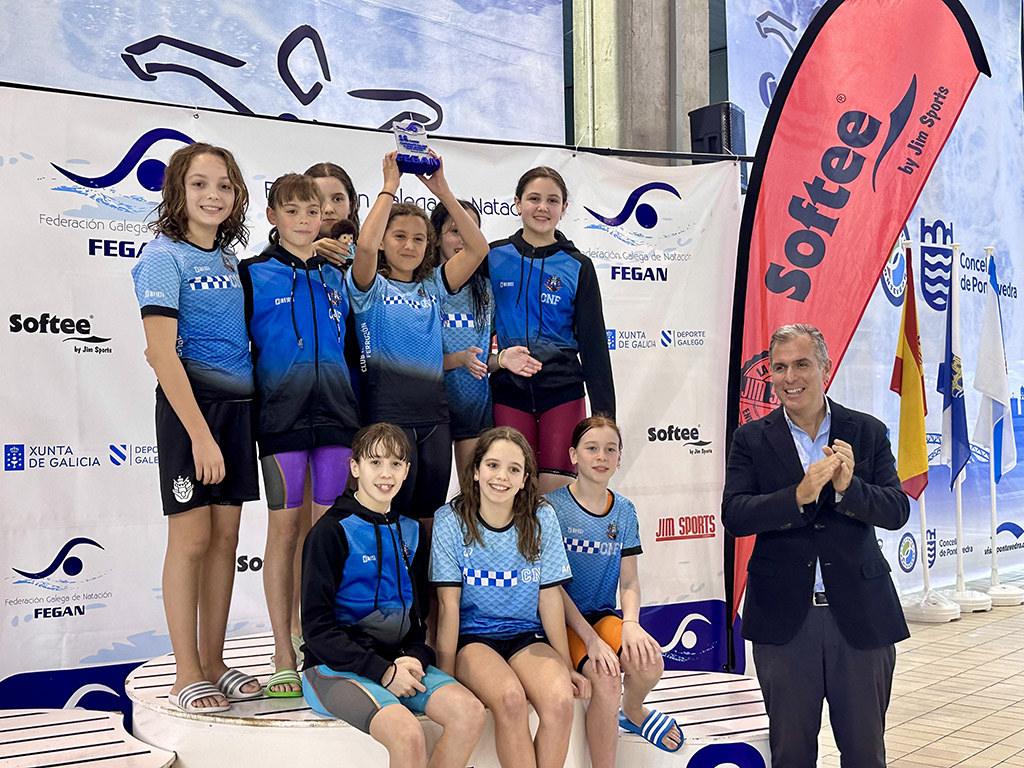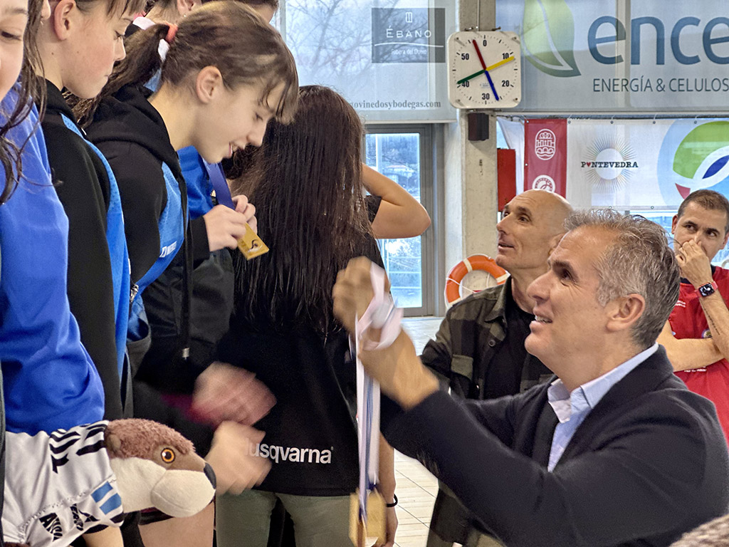 O vicepresidente da Deputación de Pontevedra, Rafa Domínguez, acaba de participar no acto de entrega de medallas e trofeos do Campionato Galego Alevín de Natación de Inverno, que se disputou ao longo desta fin de semana no Complexo Deportivo Rías do Sur de Pontevedra e reuniu a preto de 200 nadadores e nadadoras dunha trintena de clubs de toda Galicia.
