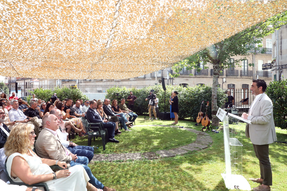 O presidente da Deputación de Pontevedra, Luis López, presentou este luns nos xardíns do Palacete das Mendoza as liñas mestras do novo plan estratéxico para o turismo do organismo provincial, que leva o nome de Estratexia Rías Baixas Turismo 61. Un documento integrado por cinco eixos, cun orzamento de 44,5 millóns de euros, que ten o obxectivo de facer da calidade de vida deste territorio o centro do destino e a filosofía de multiplicar as Rías Baixas por 61, o número de concellos da provincia, para que todos sexan parte activa do destino. “O turista xa non só quere vir aquí, quere ser de aquí. E os veciños queremos que os nosos modos de vida sigan a ser respectados, coidados e valorados”, resumiu o mandatario provincial o sentido desta nova folla de ruta que rexerá as políticas turísticas da Deputación ao longo da presente década nun acto no que tamén participou a deputada de Turismo, Nava Castro, e no que estiveron presentes representantes do sector, así como alcaldes e concelleiros de toda a provincia.