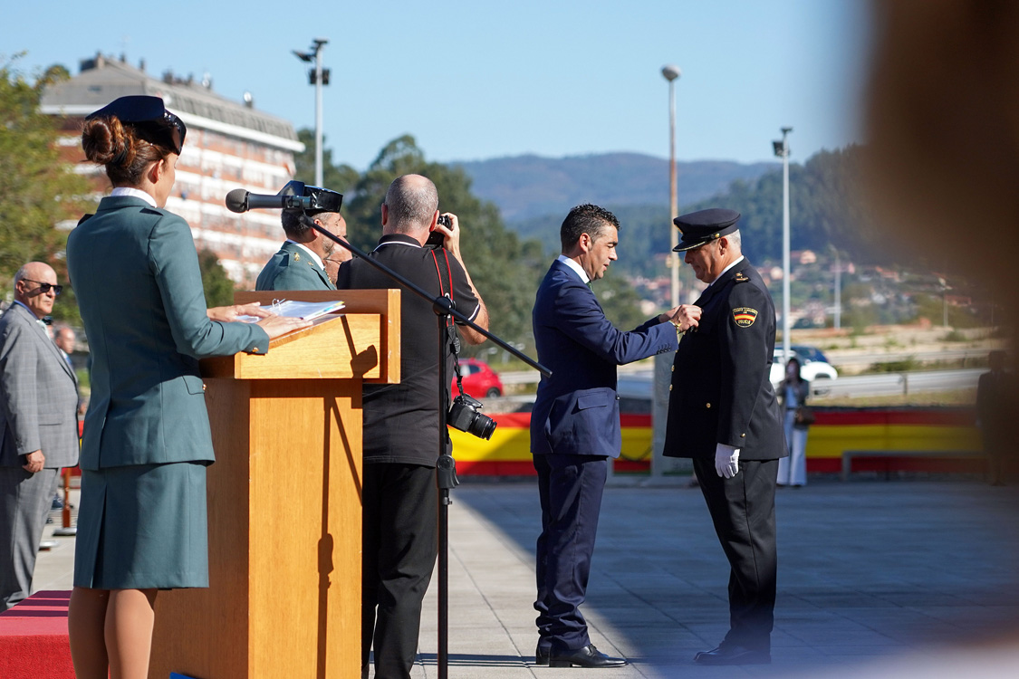 O presidente da Deputación de Pontevedra, Luis López, acompañado polo vicepresidente Rafa Domínguez, participou este domingo na Comandancia da Garda Civil en Pontevedra, no acto de conmemoración da festividade da patroa da Garda Civil, a Santísima Virxe do Pilar. O mandatario provincial estivo presente na imposición de condecoracións e na ofrenda aos axentes falecidos.