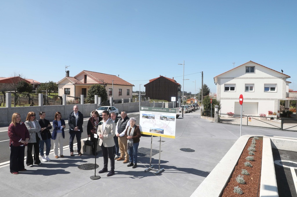 O mandatario provincial, acompañado polo alcalde David Castro, percorre unha estrada renovada que conta con beirarrúas máis amplas, máis prazas para aparcar e mellores servizos logo do investimento de 650.000€ da Deputación e o Concello