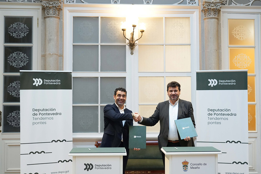 O presidente da Deputación de Pontevedra, Luis López, vén de asinar un convenio de colaboración co alcalde de Meaño, Carlos Vieitez, para a humanización e mellora da seguridade viaria na rúa Campo da Feira, na contorna da casa consistorial. Unha intervención valorada nun total de 454.300 euros, dos que o ente provincial achega o 70 %, arredor de 318.000; e o Concello de Meaño os 136.300 restantes correspondentes ao 30 % do orzamento total. “Estamos a mellorar as estradas provinciais baixo criterios de protección aos peóns e, ao mesmo tempo, que todos os vehículos poidan transitar por estradas seguras e modernas”, afirmou o dirixente destacando a partida orzamentaria de 40M€ reservada polo goberno provincial para investir este ano na rede viaria de titularidade provincial.