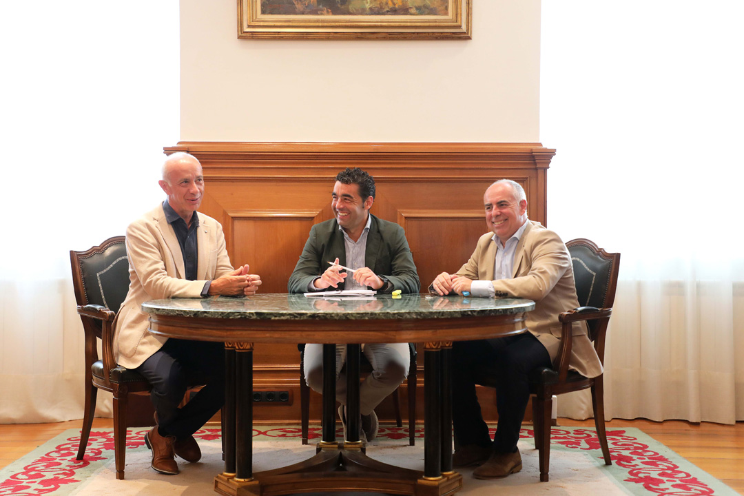 O presidente provincial, acompañado polos deputado Javier Tourís, asina co alcalde Gonzalo Durán o acordo para executar a primeira fase de mellora da estrada EP-9701, que inclúe a construción dunha senda peonil