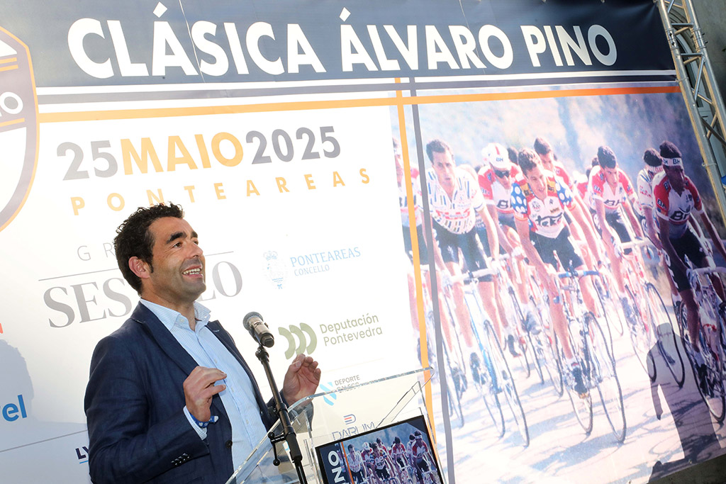Acompañado pola deputada de Turismo e alcaldesa de Ponteareas, Nava Castro, o presidente Luis López participou no acto de presentación dunha proba celebrada por primeira vez no ano 1997 e que desde o 2001 rende homenaxe á lenda local do ciclismo e campión da Volta a España en 1986, Álvaro Pino. Unha cerimonia conducida polo xornalista Terio Carrera que serviu para recoñecer a traxectoria de dous exciclistas ilustres neste Concello como Álvaro Pino e Isidro Araújo. A proba celebrarase o vindeiro 25 de maio e ofrece dúas opción de percorrido adaptados ás capacidades de todos os ciclistas. Por unha banda, un trazado curto de 75 quilómetros cun alto de montaña e, por outro, un roteiro longo de 129 quilómetros con catro portos de montaña. “É un percorrido polo paraíso interior das Rías Baixas, pola comarca do Condado, que conta con xoias como o Castelo de Sobroso”, salientou o dirixente provincial.