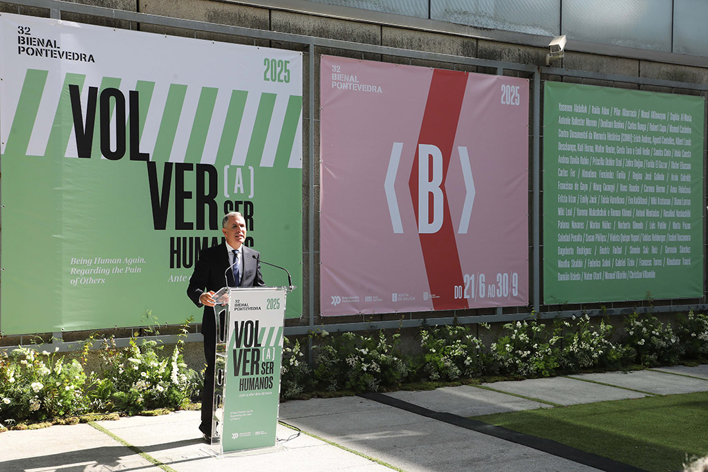 A 32ª Bienal de Arte, que leva por lema “Volver a ser humanos. Ante a dor dos demais”, conta con 13 sedes repartidas por Pontevedra – entre elas o Museo, o Sexto Edificio, O Pazo da Cultura, o Edificio Sarmiento, A Casa das Campás ou espazos urbanos- nas que se ofrecerá o traballo de 60 artistas de 28 nacionalidades, cunha forte presenza de voces femininas e creadoras emerxentes. As obras afondan en cuestións como a guerra, a memoria, a migración, a dor, a empatía ou a crise climática, sempre desde a ollada crítica e poética da arte contemporánea.