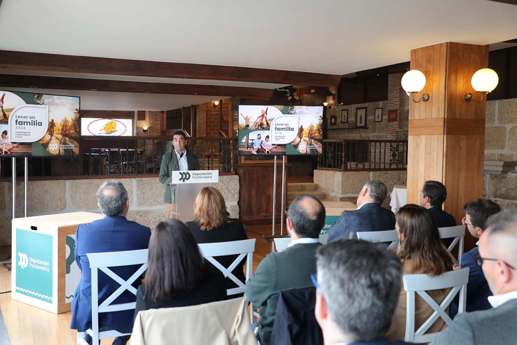 O presidente da Deputación de Pontevedra, Luis López, deu a coñecer unha ferramenta novidosa e pioneira para mellorar a calidade de vida da veciñanza e dinamizar a actividade turística das Rías Baixas en tempada baixa a través dun investimento de 180.000 euros para financiar estancias de unidades familiares en balnearios, talasos, spas ou hoteis da provincia. Trátase do programa Lecer en Familia, un novo impulso do goberno provincial ao benestar e ao turismo que foi presentado este xoves polo mandatario provincial na taberna do Gran Talaso Hotel Sanxenxo, un dos doce establecementos, pertencentes a sete concellos, que se adheriron a este proxecto. “Falamos dunha iniciativa que busca apoiar ás familias con menores poñendo á súa disposición unha fin de semana de relax e aos establecementos hoteleiros da provincia”, sinalou Luis López nun acto de presentación no que participaron es deputados Sandra Bastos e Marcos Guisasola, así como o alcalde de Sanxenxo, Telmo Martín; e o director do Gran Talaso Hotel Sanxenxo, Óscar Fontán.
