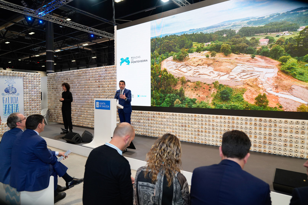 O presidente da Deputación de Pontevedra, Luis López, presentou este xoves o proxecto Trazas de Pontevedra, unha ruta por 17 xacementos arqueolóxicos que permite descubrir o patrimonio castrexo e romano repartido por toda a provincia. No posto que Turismo de Galicia ten na Feira Internacional de Turismo (Fitur), que se celebra esta semana en Madrid, o mandatario provincial afirmou que dar a coñecer esta riqueza contribúe a reforzar a posición da provincia como “destino turístico de calidade, natural, sustentable, diverso e enraizado coas súas tradicións”.