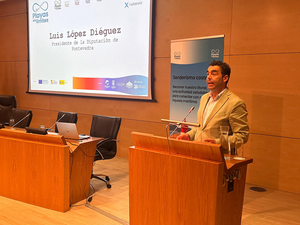“A sustentabilidade, a descentralización e a desestacionalización do turismo son tres dos nosos grandes obxectivos. É por iso que non só aplaudimos y celebramos proxectos como este de Praias sen Límites, tamén nos sumamos a eles cun convencemento firme”, sinalou o presidente, quen enumerou diversos eventos deportivos que se celebran ao longo do ano na contorna costeira das Rías Baixas, o contacto coa natureza para observar aves ou mamíferos mariños e o patrimonio tanto material como inmaterial, desde faros ou ermidas ata festas gastronómicas ou romarías que enchen de interese o litoral pontevedrés.