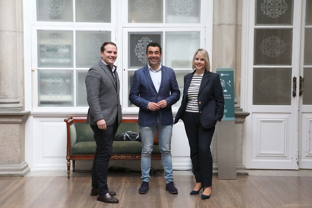 O presidente da Deputación de Pontevedra, Luis López, recibe no Pazo provincial á directiva da asociación Salnés Empresarial —Jesús Rey, presidente; e Tamara Sineiro, vicepresidenta—, un colectivo fundado este ano 2025 co obxectivo de fortalecer o desenvolvemento económico nas comarcas do Salnés e Caldas. O mandatario provincial amosou o seu interese polas ideas que ten esta entidade e tendeu a man da Deputación para colaborar en todo o que sexa posible para apoiar o emprendemento nestas dúas comarcas e puxo como exemplo o bo momento que atravesa o polígono empresarial de Barro Meis impulsado polo organismo provincial, que conta cunha ocupación do 80%.