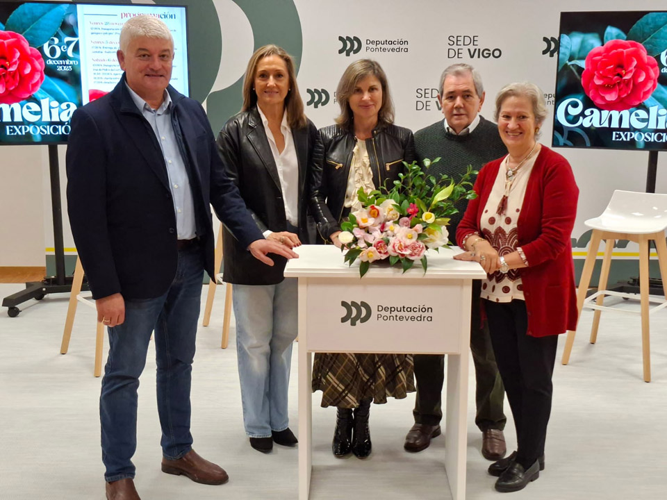 A vicepresidenta da Deputación de Pontevedra, Luisa Sánchez, convidou a toda a cidade de Vigo a “deixarse sorprender” polas actividades organizadas nas vindeiras semanas polo Concello de Ponteareas en torno á camelia. A representante provincial recibiu este luns á alcaldesa da vila do Tea, Nava Castro, na sede olívica da Deputación para presentar a exposición ‘A camelia, flor de galegas e galegos’, que se inaugurará o 28 de novembro na Praza da Música. Ademais, animou a mergullarse na programación deseñada para os días 5, 6 e 7 de decembro, na que se inclúen os premios do Concurso de Relatos Ilustrados da Camelia, charlas sobre o té de camelia, obradoiros en torno a esta flor e varias actuacións de música tradicional galega.