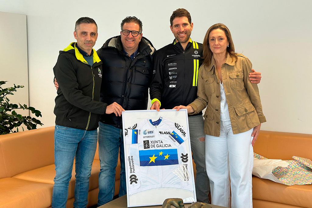 A vicepresidenta da Deputación de Pontevedra, Luisa Sánchez, acaba de reunirse co equipo de ciclismo do Porriño Máster da Louriña nunha xuntanza na que recibiu a camisola de campión de Europa de ciclismo adaptado que conseguiu Damián Ramos. Sánchez enxalzou a traxectoria deste ciclista, que foi preseleccionado para competir nos Xogos Olímpicos de París e que conta cun palmarés que abrangue desde o título de Campión de España e de Europa ata o ouro na Copa do Mundo de Adelaida.