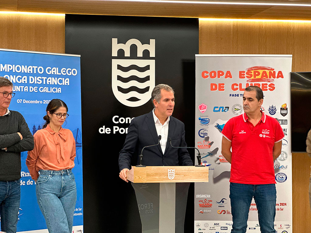 O vicepresidente da Deputación de Pontevedra, Rafa Domínguez, participou hoxe no Concello de Pontevedra na presentación de dous eventos deportivos que organiza o CN Galaico nos vindeiros días na piscina olímpica do CD Rías do Sur: a Copa de España rexional de clubs de 2ª División, os días 30 de novembro e 1 de decembro, e o Campionato Galego de Longa Distancia, o 7 de decembro, dous competicións que reunirán nadadores de clubs das catro provincias galegas.