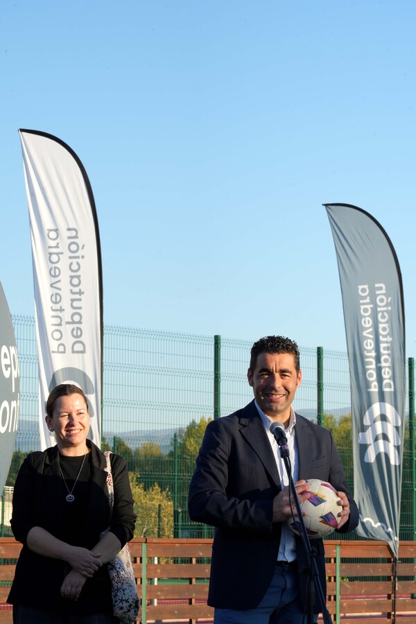 O presidente da Deputación de Pontevedra, Luis López, salienta un novo paso adiante na provincia do deporte a inauguración das pistas polideportivas da Canuda do Concello de Salvaterra. Unha actuación valorada nuns 140.000 euros financiados ao 100 % polo organismo provincial ao abeiro da segunda convocatoria do Plan Extraordinario de Infraestruturas Deportivas. Nun percorrido por este recinto ao aire libre acompañado pola alcaldesa Marta Valcárcel, López puxo de manifesto o impulso que a Deputación está a dar as instalacións municipais de todos os concellos da provincia grazas aos 20 millóns de euros que está a mobilizar o goberno provincial a través das tres convocatorias, aprobadas ao longo do presente mandato, do Plan Extraordinario de Infraestruturas Deportivas.
