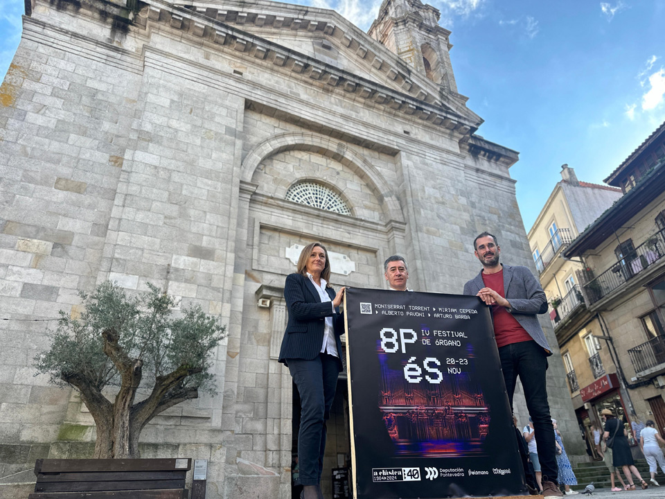 A vicepresidenta da Deputación de Pontevedra, Luisa Sánchez, participou este mércores na presentación do IV Festival de Órgano de Vigo 8pés, organizado pola Orquestra Clásica de Vigo e co que pon en valor o único órgano activo da cidade, que se atopa na Concatedral de Santa María e foi construído por Alberdi en 1909. Entre o 20 e o 23 de novembro esta cita permitirá desfrutar de grandes músicos de referencia do panorama musical estatal e incluso internacional. "Unha cita como esta non podía ser noutro lugar que non fora Vigo, porque esta cidade respira música e cultura polos catro costados", asegurou a vicepresidenta provincial, que lembrou que, ademais dos concertos, o festival contará con diferentes actividades, como as conversacións sobre o órgano, que se celebrarán na Sede de Vigo da Deputación.