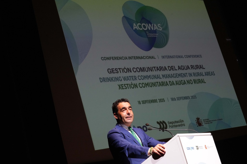 O presidente da Deputación de Pontevedra, Luis López, destacou o compromiso do organismo provincial coa sustentabilidade na xestión da auga a través do apoio pioneiro ás comunidades de usuarios de auga da provincia, que nestes dous anos de goberno recibiron máis de 4 millóns de euros —a través de programas como o +Aqua, o Novaqua e a convocatoria dos primeiros premios +Aqua— para mellorar os sistemas de captación e abastecemento da auga en diversos núcleos de poboación da provincia. Fíxoo na apertura da Conferencia Internacional da Xestión Comunitaria da Auga no Rural, Acowas, un congreso celebrado no Teatro principal da cidade do Lérez no que participaron representantes destes colectivos chegados de distintos países de Europa para poñer en común o traballo realizado e os retos de futuro na xestión comunitaria deste recurso.