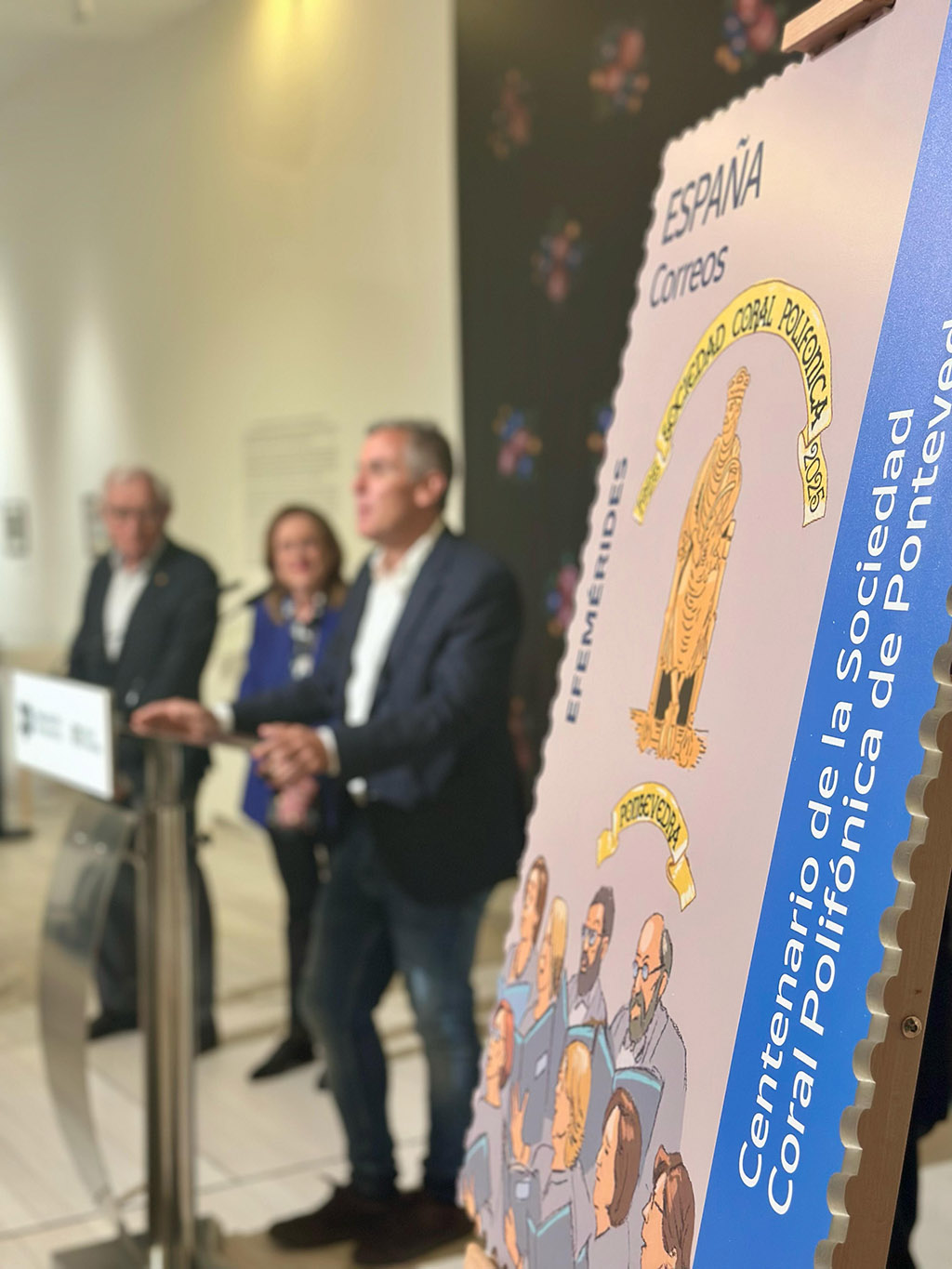 Rafa Domínguez participa na presentación do selo de Correos dedicado á Sociedade Coral Polifónica de Pontevedra