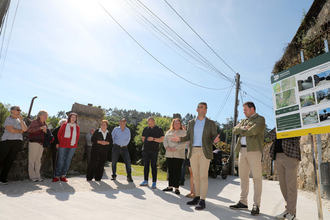 O presidente da Deputación de Pontevedra, Luis López, comprobou este sábado na parroquia de Quireza, en Cerdedo-Cotobade, o remate das obras de humanización do núcleo dos Castros. O mandatario provincial percorreu un treito deste reformado espazo público que é froito da colaboración entre os gobernos provincial e local e supuxo o investimento de 260.000€, dos que a Deputación achegou o 85 %, uns 221.000€, ao abeiro do programa PON2030. "Humanizamos este núcleo dos Castros con todas as comodidades das zonas urbanas, para que a veciñanza do rural viva nun espazo da máxima calidade e coas mellores dotacións", salientou o dirixente, quen visitou este novo espazo acompañado polo alcalde e deputado provincial, Jorge Cubela.