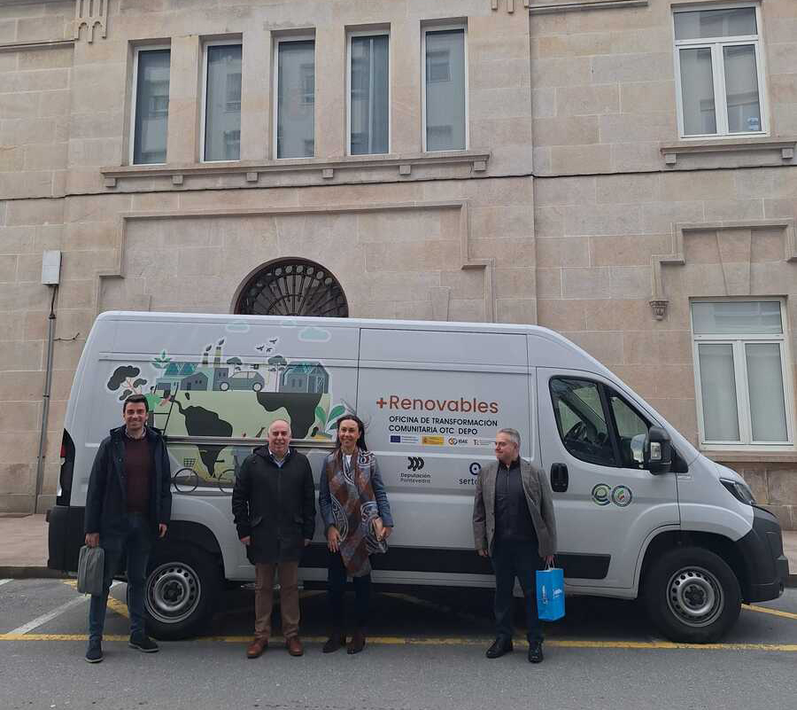 A oficina móbil da Oficina de Transformación Comunitaria está a percorrer os concellos de menos de 50.000 habitantes da provincia para informar, asesorar e acompañar proxectos relacionados coa eficiencia enerxética desde a súa creación ata a produción e o autoconsumo. Trátase dun vehículo 100% eléctrico onde o persoal técnico do programa informará in situ sobre cuestións de índole legal (redacción e estatutos e normas, cesión de cubertas, revisión de contratos de execución de obras…), técnica (deseño de proxectos de xeración térmica ou eléctrica) e económica (créditos bancarios e outras fórmulas de financiamento…).