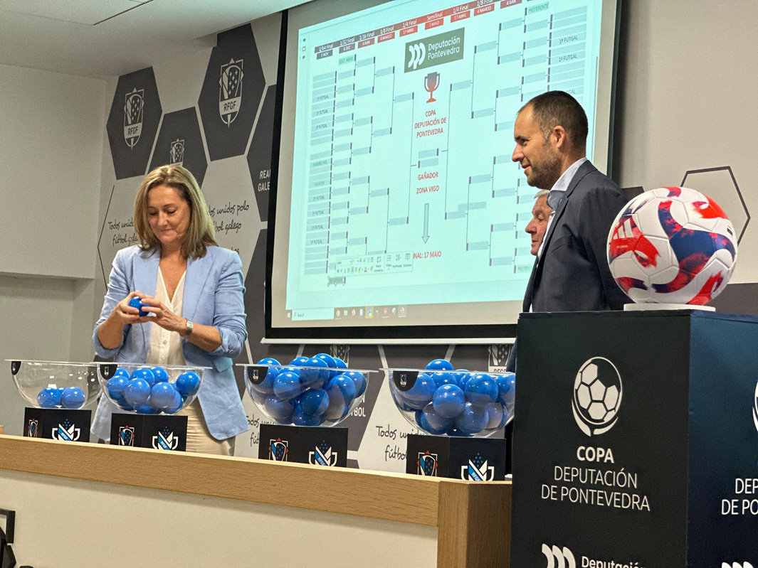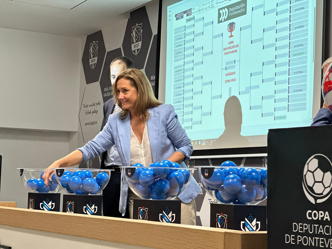 A vicepresidenta da Deputación de Pontevedra, Luisa Sánchez, participou na sede da Federación Galega de Fútbol en Vigo no sorteo da fase norte da Copa Deputación de fútbol, un acto no que tamén estiveron presentes representantes de todos os clubs da zona. “A Deputación e a Federación unimos as nosas forzas para garantir a supervivencia dunha competición que era unha insignia na provincia e merecía unha continuidade”, asegurou a vicepresidenta provincial quen confirmou que a Copa Deputación arrancará o 1 de novembro, que a gran final será o 17 de maio, e que participarán na proba un total de 70 equipos do norte da provincia de Pontevedra.