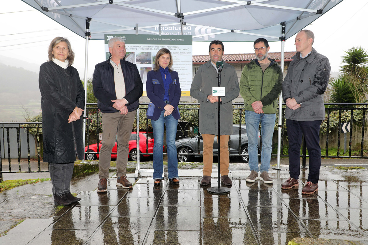 A visita serviu tamén para facer un repaso doutros investimentos promovidos pola Deputación en materia viaria tanto en Bazos de Porbén como en Ponteareas. Neste último, o ente provincial destinou máis de 770.000 euros á mellora viaria ao longo dos anos 2023 e 2024 e, entre outras medidas, está en marcha o procedemento de adxudicación dunha mellora da sinalización nesta mesma estrada EP-2703 valorada en preto de 30.000 euros. Por outra banda, no concello de Pazos de Borbén, o investimento en infraestruturas por parte da Deputación nos anos 2023 e 2024 superou os 450.000 euros e está en fase de tramitación, despois de que o goberno de Luis López lograra desbloquear o convenio, o proxecto de ampliación e mellora da seguridade viaria e mobilidade peonil na EP-2702 entre Amoedo e Os Valos.