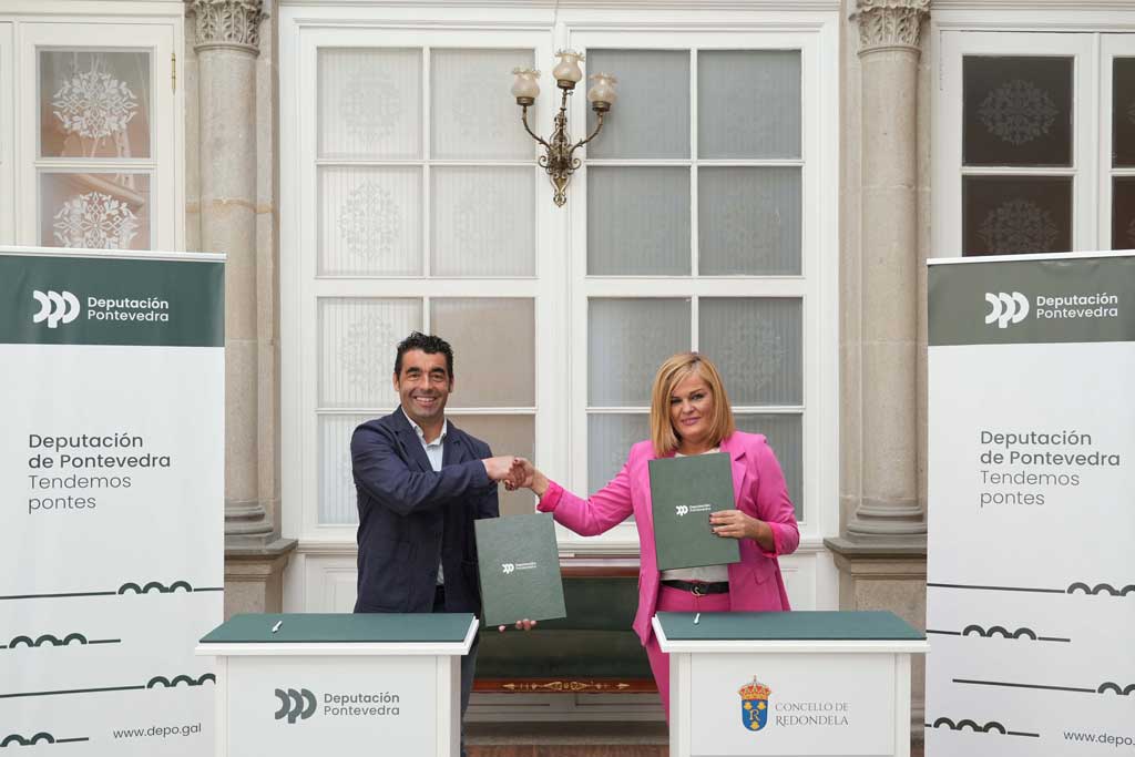 Luis López asina coa alcaldesa de Redondela, Digna Rivas, o convenio co que a Deputación achega 670.000€ para humanizar a Praza da Petanca